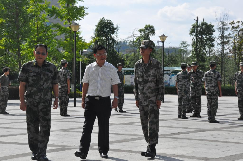 我校党委副书记刘建国、副校长蔡善君分别于7月26、28日在武装部部长李实明的陪同下到集训场,看望慰问我校2018年大学生军训暑期集训的教官。