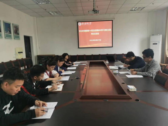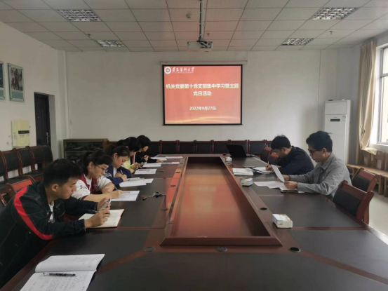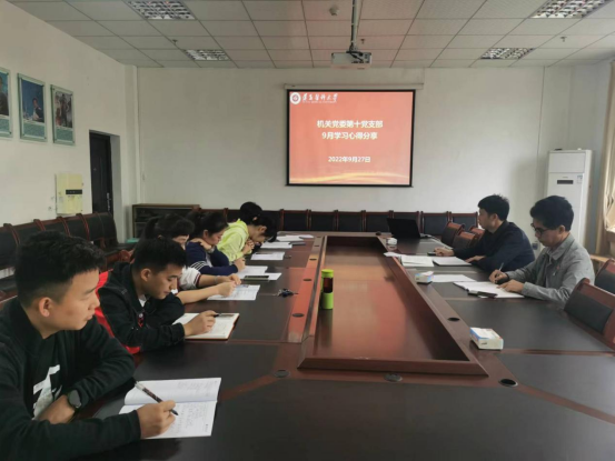 9月27日上午,机关第十党支部在新蒲校区武装部会议室开展9月集中学习暨主题党日活动。活动由支部书记刘承亮主持,支部9名党员参加。