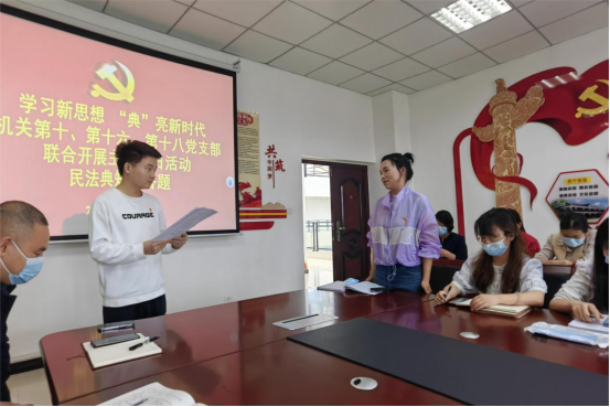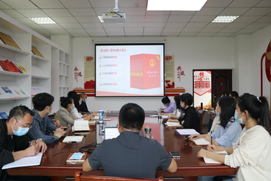 为深入学习贯彻习近平法治思想,大力弘扬社会主义核心价值观和社会主义法治精神,推进民法典学习宣传向纵深发展,5月25日上午,机关第十、第十六、第十八党支部以“学习新思想‘典’亮新时代”为题,在学生中心506室党员之家联合开展学法主题党日活动。三个党支部党员、入党积极分子、群众参加活动。